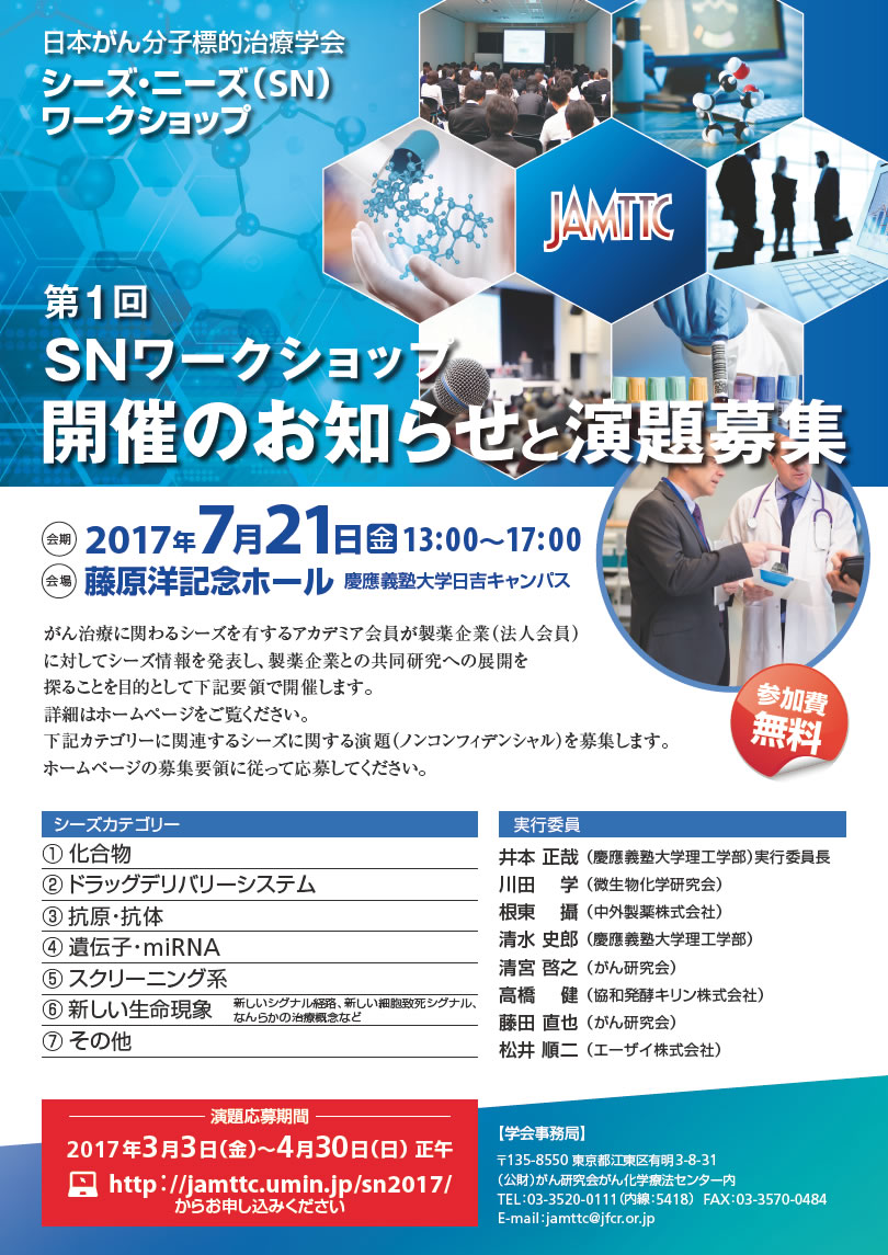 | 名称 | : | 日本がん分子標的治療学会第1回シーズ・ニーズ(SN)ワークショップ |