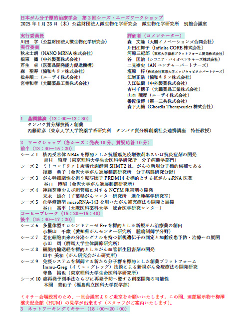 日本がん分子標的治療学会第2回シーズ・ニーズワークショップ